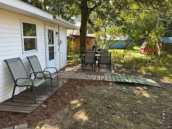 2 bed home located one block from Koontz Lake.  Sheds, Pavers and a pier on Koontz Lake are included with this sale.   Brand New Gas Range and Refrigerator. 4 inch well.  This home is sitting on 3 lots.   Home is being sold in "As Is" condition.