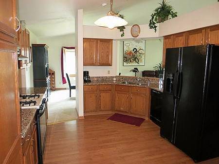 Meticulously maintained open concept maintenance free ranch. Large kitchen with quality cabinetry, granite countertops and newer flooring. Family room with cathedral ceilings and patio door to deck. Many new windows and new tear off roof. 6 panel doors throughout. Great sized master bedroom with patio doors also leading to deck. Private master bath with updated fixtures and granite countertops. Hall bath with newer ceramic tile and granite. Generous private lot with garden shed on cement slab. Beautiful landscaping with rock for even less maintenance. Neutral decor and move in ready.