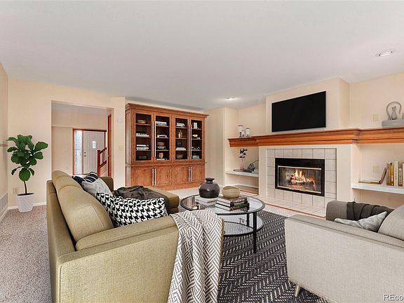 - Description: Carpet Floors, Fireplace, Shelving, Sliding Door To Backyard