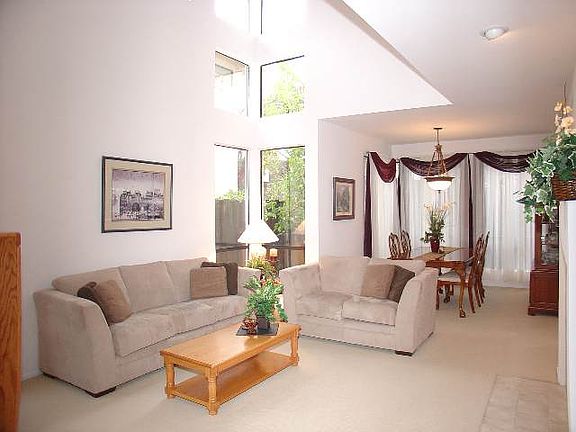 Gorgeous, updated plan 9. Light & bright, creamy berber cpt, 18" trav tiles on lower level, granite, newer paint. 2-2 way fp in mastr bd/retreat & liv/fam rms. Show blind! Back yard with patio lemon tree & flowers. Attached @ garage only. Feels like a SF home.