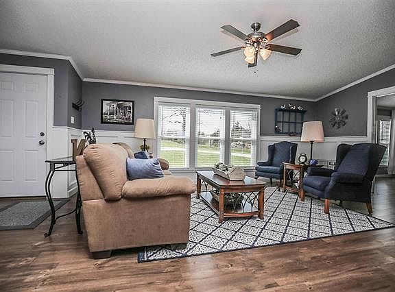 This is a completely remodeled farmhouse 4 bed/2 bath home on a foundation. Special amenities include an open floor plan, freshly painted neutral décor, vaulted ceilings, updated lighting fixtures, and new laminate flooring throughout. The updated kitchen boast new cabinets, granite counters, farmhouse sink, with stainless steel appliances. The large master suite includes a walk-in closet and bathroom with dual sinks. The roof, siding and windows are just 2 years old. This home is situated on 10 acres and offers the best of country living with access to Hwy 30 just a short drive away. Large barn on property is in usable condition and there is also a small pond on the property. Value priced for this acreage and completely renovated home! * Buyer to confirm school district.*