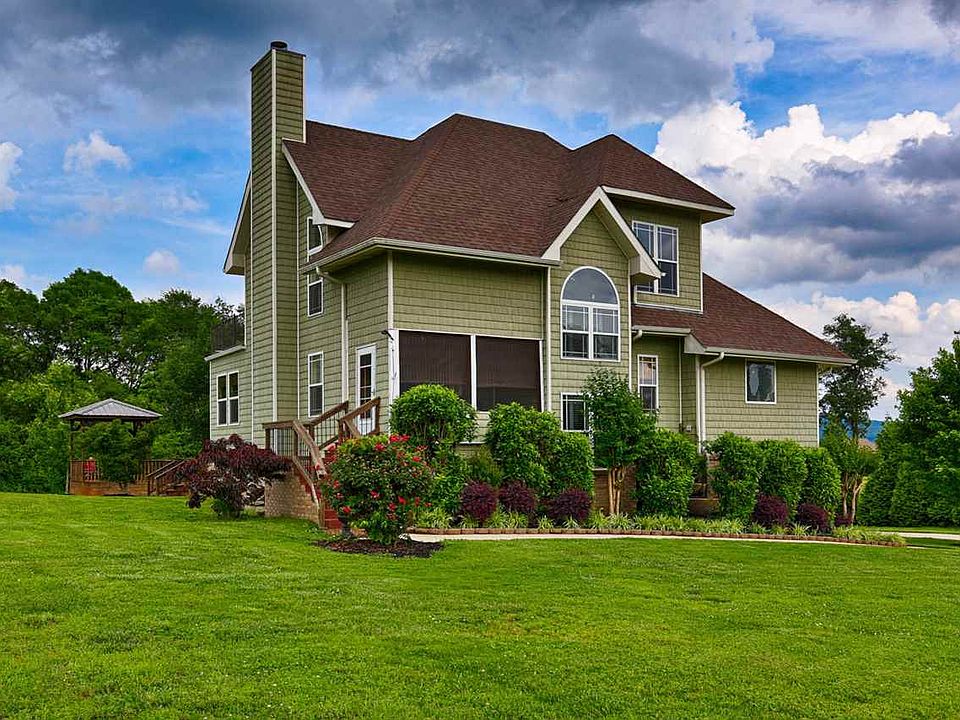 Plenty of room inside & out in this basement home on 3.75 acres w/2 car attached garage, 2 car detached garage, & another detached workshop w/power! You will love the soaring ceiling in the great room w/fireplace that opens into the kitchen & breakfast room. Enjoy the view of your land from the sun room. The isolated master suite has a private screened patio & a glamour bath w/separate vanities, jetted tub & tile shower. Upstairs, 2 more bedrooms share a full bath. The back bedroom has a private balcony overlooking the back yard. The basement has a theater room & another room that could be a sitting room, study or hobby room. Outside, the multi-level deck is perfect for enjoying the outdoors