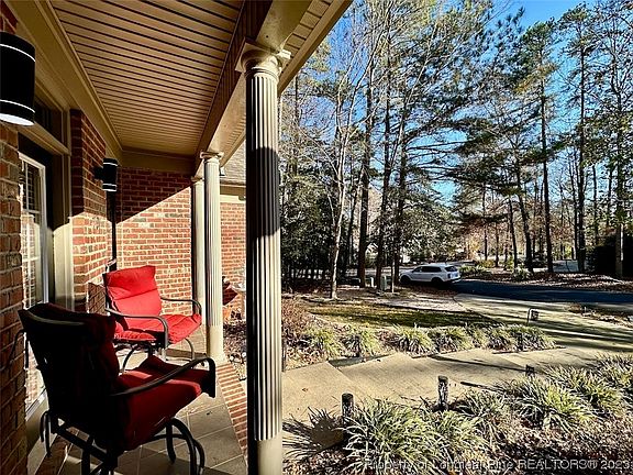 **Back on the market** Presenting a charming Carolina Trace home with a brick exterior, a beautifully manicured & private backyard. This home features a split bedroom layout, a great room with a fireplace, new LVP flooring, fresh paint, high ceilings, & LVP floors throughout. An open formal dining area showcases elegant arches & columns. The kitchen offers ample countertop space, a side-by-side refrigerator, a stylish tile backsplash, & lots of cabinetry. The laundry room includes a sink & new washer/dryer. Adjacent to the garage is a heated/cooled room perfect for an exercise room, man-cave, or a teenager's retreat. The Owner's Suite boasts a coffered ceiling & a walk-in closet, while the master bath pampers with double vanities, a jetted tub, & a separate shower. Outdoors, a partially fenced yard features a gazebo & firepit. Circular concrete driveway, new roof with gutter guards (2019), & a screened porch addition (2018). Complete backyard privacy, thanks to the surrounding woods.