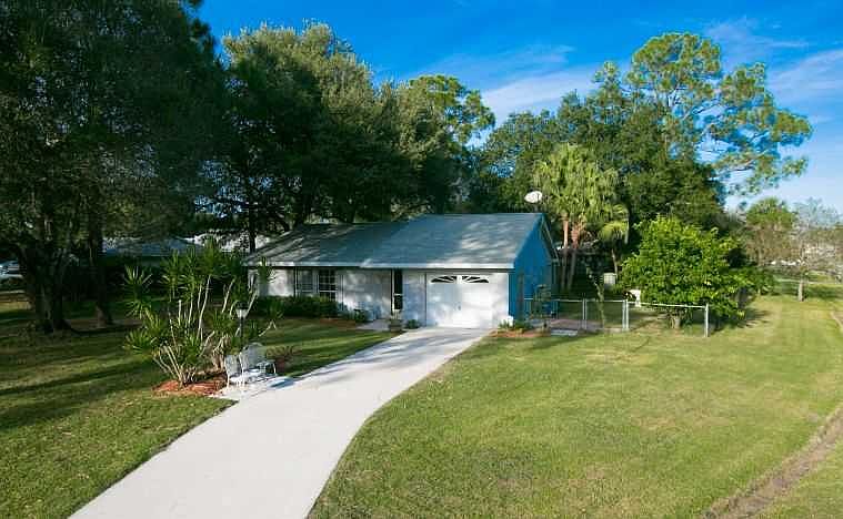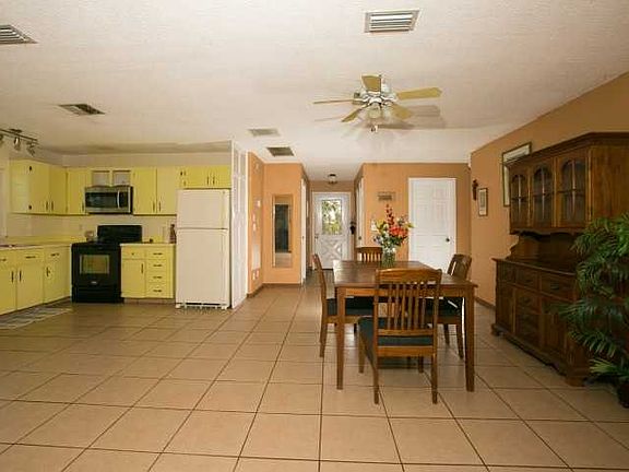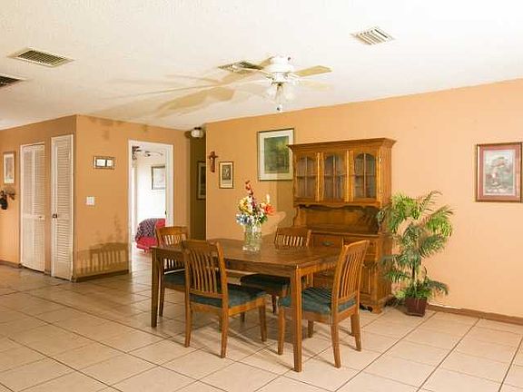Huge private corner lot with lots of space for boat or motor home. CBS construction with frame addition family room added to rear of home. Covered patio in rear to enjoy the outside. Easy care tile flooring throughout great room and baths.
