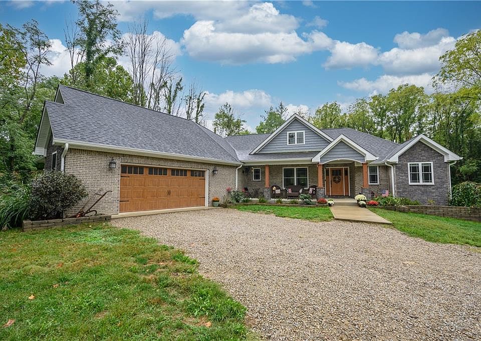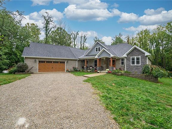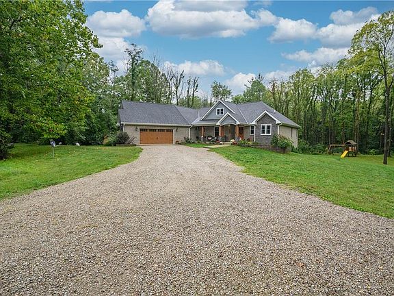 Craftsman style, custom ranch home with a walkout basement, built in 2016. Private, wooded setting on 10.5 acres with a 2 acre pond and a 30x40 pole barn. Home features a split floorplan with 3 bedrooms and 2.5 baths. It also has a large great room with vaulted ceilings and a fireplace. The kitchen features a walk in pantry, Cambria Quartz countertops, and stainless steel appliances. It also has an oversized laundry room and a bonus room above the garage (not included in square footage). Full sized, unfinished, walkout basement if you desire additional living space or storage. Maintenance free exterior, nicely landscaped with only a small yard to mow. Home is connected to Princes Lakes water and is located within Indian Creek schools.