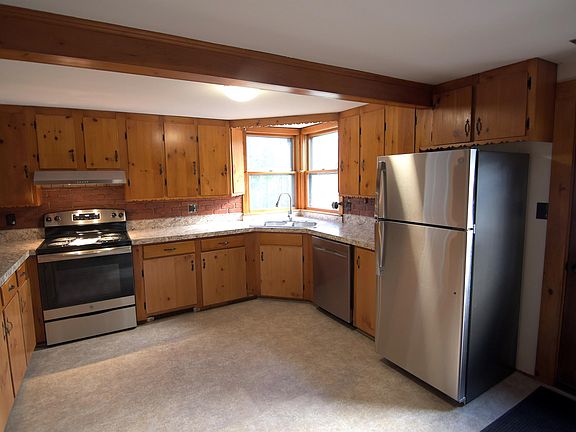 Charming yet spacious 3 bedroom, 1 bath log cabin style home with garage on 50 acres of wooded land. Fully renovated in 2020, the home features refinished hardwood floors, a beautiful stone fireplace, all-new bath, and all-new stainless kitchen appliances and countertops, with fresh paint throughout. Enjoy quiet country living just 10 minutes from Gray and Freeport, 20 minutes from Brunswick and only 25 minutes from Portland and Lewiston/Auburn. No smoking. Pets accepted on a case by case basis. Resident pays electricity and natural gas heat. Heat pump in dining room provides a/c. Application, credit/background/eviction screening ($30 per occupant 18 or older), 1 year lease, and deposit required. Income at least 3 times the rent and good credit required. If you are seeing this listing, the home is still available. Please let us know a little about yourself: When you plan to move, how many people and animals will be living with you, and that you are familiar with the qualifications.