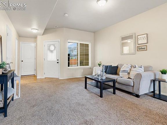 Delightful 2BR, 3BA townhome in the S/E community of Brant Hollow in Colorado Springs. Covered front porch. Central air and heat for year-round comfort. Vinyl floor Entry w/ garage access and convenient Powder Bathroom off the Entry. Enjoy a spacious living area w/ neutral carpet that flows into the walk out Dining Room and Kitchen, both w/ vinyl flooring. The Dining Room has a slider to the backyard patio for outdoor dining and relaxation. The Island Kitchen features a counter bar, pantry, and wood cabinets with laminate countertops. Appliances include a smooth top range oven, built-in microwave oven, and side by side refrigerator. Upstairs hosts a laundry room w/ washer/dryer hook ups, 2 spacious bedrooms & 2 Full Bathrooms. The Primary Bedroom has neutral carpet, walk in closet, and an adjoining Full Bathroom w/vanity, mirror, and tub/shower. There is a 1-car attached garage w/ door opener & storage, and a fenced backyard w/concrete patio for outdoor fun. Located in the Harrison 2 School District, minutes from Powers Blvd, I-25, Peterson AFB, Schriever AFB, shopping, entertainment and more! Don't miss the opportunity to make this awesome place your new home!