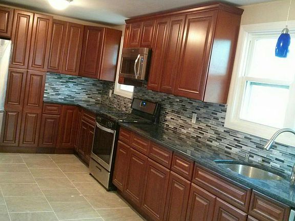 Spectacular sunny updated brick ranch on large lot. This 3 bedroom house offers an eat-in kitchen with brand cherry cabinets, stainless appliances, granite counter top with back slash, large living room/dining room, 2 car garage, newer vinyl windows, central A/C. A wonderfully fenced-in large backyard offers privacy. Hardwood floors throughout. Close to shopping, restaurants, train station. NTN report is required. The tenant responsible for first $150 of repairs.