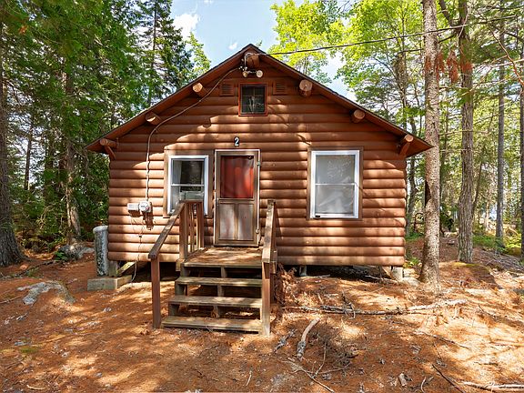 This property boasts eight acres and 221' of waterfrontage. Both rustic log cottages have two bedrooms each, 1 bathroom each with showers, electricity, water pumped from the pond and a shared septic system.