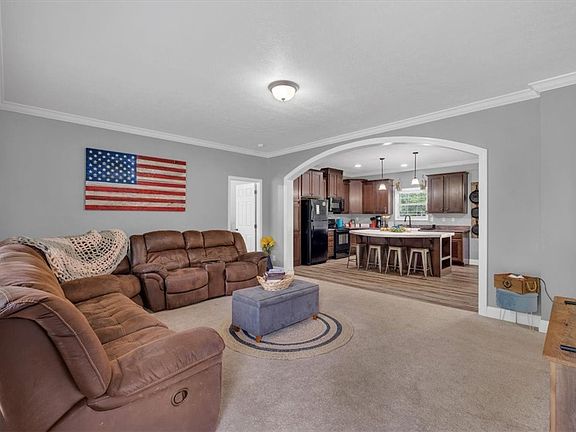 This 4-bedroom/2-full bath Modular home on a 7.15-acre lot in the country; yet convenient to downtown. Amazingly private and tranquil with a creek and waterfall. Meticulously maintained with an open floor plan and split floor plan of bedrooms. All rooms are massive. Mud room and walk-in laundry. There is a new covered back porch to enjoy the beautiful acreage and 2-outbuildings for ample storage. No Restrictions! This is a great home on loads of acreage, at a great price! Schedule your private showing today!