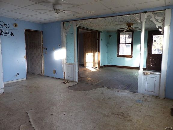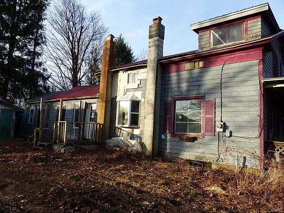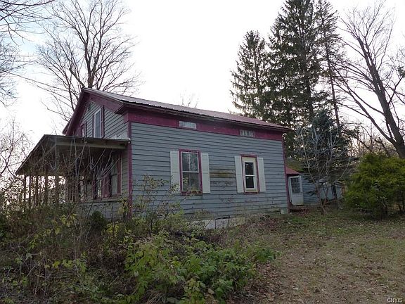 Roll up your sleeves and bring this home to life with your vision. The rooms downstairs are spacious, with a decent layout. Ceiling height is typical. There are two to three upstairs bedrooms and one room down currently used as a bedroom, but could also be a den or office. There's LOTS of storage areas, a cute pond with a little bridge in the big yard. The open front porch will give you a place to relax and watch the world go by. Rt 8 will zip you to New Hartford or Utica in 15-20 minutes, or head south to Rt 20 and enjoy the scenic Cherry Valley Turnpike!
