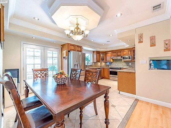 Updated one level home sits on a corner lot with beautiful hill views! Large driveway, Central heat & Air, dual pane windows, remodeled kitchen includes granite counter tops, oak cabinets, under cabinet lighting, stainless steel appliances, microwave included. Tile flooring, French doors to backyard. Crown molding throughout, recessed lighting. Laminate flooring, Shed in backyard for storage and much more! Fruit trees, Close to BART, Hwy 84 & Highways. One block to elementary school. Jogging/walking trails are walking distance. Don't miss this opportunity, text Peter at 415-830-7732 or send email to peteryu8798@gmail.com. Tenant responsible for trash, sewer,water utilities