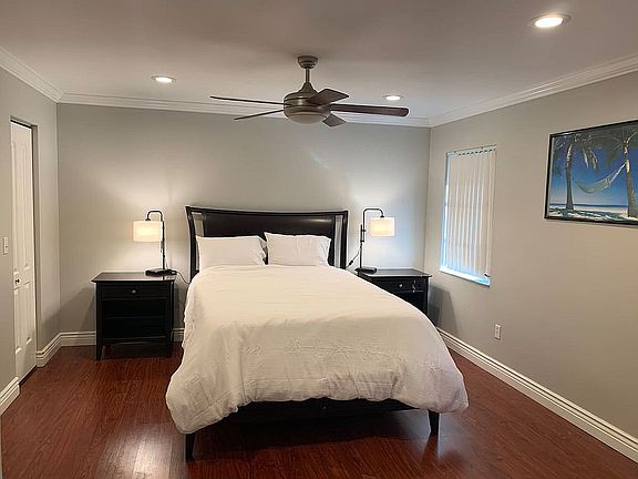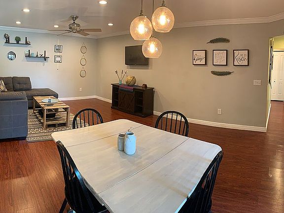 This updated townhome has some great and current features including crown moulding, laminate floors, large baseboard, under counter lighting in kitchen, and custom made barn door in guest room.