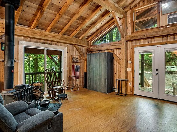 Adorable Timber Frame Cabin in the woods at 2,900 ft + Altitude. Two sweet little streams flow near the cabin. The Property is 2.97+/- acres. The interior is all open except the bathroom. Fantastic open Timber Frame throughout the home with real pine flooring. Within the last 3 years... new... Electric range/stove, Refrigerator, sink/faucet, Island, Shower, Vanity, Toilet, water heater, Sliding Door & French Door. Home is on a spring and an Ultraviolet light system has been installed for quality water! Furnishings in home convey. Professional Photos will be added asap...