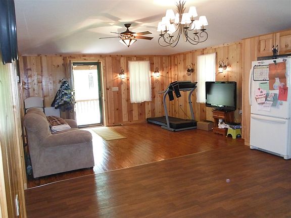 This open, roomy, remodeled ranch home is located on 14.93 acres and is waiting to become your private retreat! It was remodeled in 2006 & features large open kitchen & living rooms, nice sized bedrooms, log siding, newer vanities, plumbing, lighting fixtures, large laundry room, newer metal roof & a walkout basement. There is a barn with electric & water, pond and some fencing. There is open pasture & mature woods that have never been timbered.