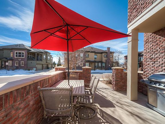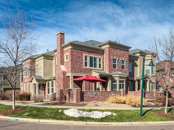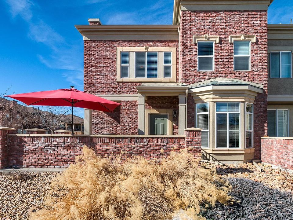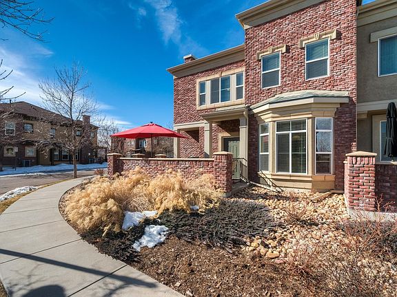Beautiful townhome in the popular Brownstones at Town Center. Open floor plan living at its finest. This home has great southeast exposure for lots of sunshine! Gorgeous granite kitchen with cherry cabinets, stainless appliances, breakfast bar island and HUGE walk-in pantry. Sunny dining room with bay window is open to kitchen for easy entertaining. Living room is the heart of the home with cozy fireplace and entertainment nook. Spacious main floor home office. Dual "master" bedrooms both with private en-suite bathrooms and walk-in closets. Optional crafting/study nook on the upper floor. Convenient in-unit laundry room with built-in shelving and closet. 2-car attached Garage offers additional large storage area. Enjoy the CO outdoors with family and friends on the spacious front patio. Restaurants, shops, trails, public transportation, library, and Civic Green Park are a short walk away. This home is super clean and move-in ready. HOA includes exterior maintenance including the roof.