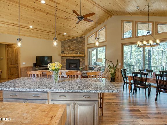 Located in the highly sought-after Torreon Golf community in Show Low, Arizona. This stunning mountain retreat boasts 3 bedrooms, 2 bathrooms, and 2,015 square feet of luxurious living space, nestled on a spacious 0.26-acre lot. Upon entering the home, you'll be greeted by a warm and inviting living room with vaulted T&G ceilings and a cozy fireplace, perfect for relaxing on chilly evenings. The gourmet kitchen is a chef's dream, featuring high-end stainless steel appliances, granite countertops, and a large island with seating for entertaining guests. The Torreon community offers a wide range of amenities, including 2 championship golf courses, tennis & pickle ball courts, fitness center, and clubhouse with fine dining. This home is also located just minutes from the shops, restaurants... ... and entertainment of Show Low. Don't miss your opportunity to own this exquisite mountain retreat in one of the most desirable communities in Arizona. Schedule your showing today