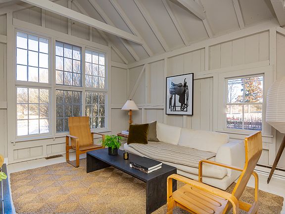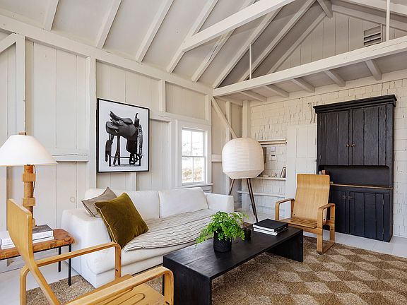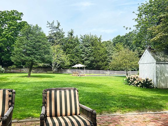 Rental Registration #: 24-203 Located in the historic section of East Hampton Springs, this circa 1810 farmhouse has been lovingly restored while maintaining its traditional charm. The original wide planked floors are a wonderful step back in time and play whimsically with the beachy aesthetic of the rest of the house. Tasteful amenities of the first floor include a great room with soaring ceilings that are enveloped in natural light, a living room with wood burning fireplace, a stylish dining area, a separate kitchen complete with modern touches including a Nespresso machine and soda stream, two guest bedrooms (one king and one queen), and a full bath. A wood paneled meandering staircase leads to the second floor which hosts the primary suite with its own en suite bath and large walk-in closet. The third floor is a bonus space, currently used as an office but can be customized based on a tenant's needs. The private backyard is a summer dream, with a large gunite pool that is outfitted with four teak lounge chairs, two sun umbrellas, and an outdoor dining pavilion covered by mature wisteria. A fire pit, Adirondack chairs, and a barn gym (with Peloton, free weights and bench) complete this magical location, all in time for making your own summer memories. [[Rental Registration # 24-203]]