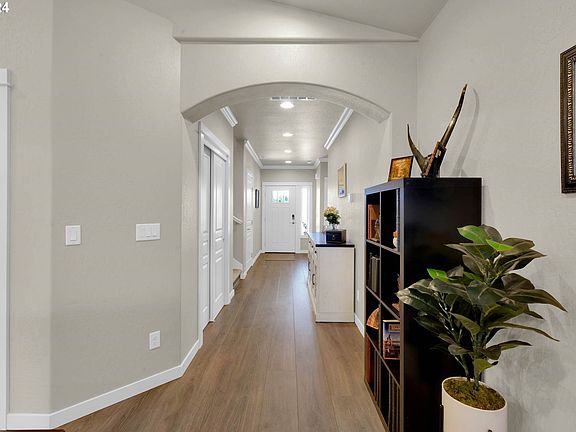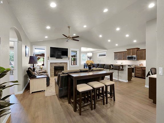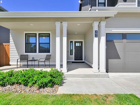 Newer, high-end craftsman home with 4 bedrooms and 3 full bathrooms in a well-cared for neighborhood! Rare, oversized 3-car garage with room for workshop! Great room boasts vaulted ceilings, gas fireplace, beautiful wide-plank LVP flooring and abundant natural light! High ceilings and arched doorways throughout! Elegant kitchen with Quartz countertops, huge walk-in pantry, built in work desk and stainless-steel/gas appliances. Spacious main level primary suite has access to the backyard and features a soaking tub, tile-surround walk-in shower, double sinks and a walk-in closet. Two other roomy bedrooms can be found on the 1st floor. Second suite with walk-in closet is on the upper level and at approximately 286 Sqft, could easily be used as a family room. Step out onto the beautiful, covered patio with huge wooden gazebo The backyard is fully fenced and backs up to Filbert Meadows Park for added privacy. Lawn is beautifully manicured and has an in-ground sprinkler system. Side yard with a giant storage shed that could easily work as a workshop. This magnificent home is move-in-ready and eager to find its new owners!