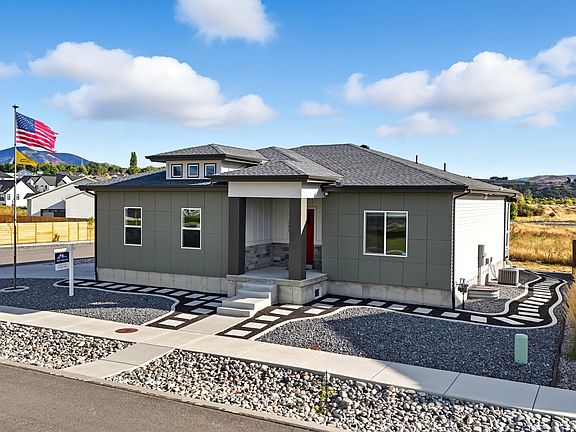 Welcome to this beautiful modern rambler featuring high-end finishes on both levels. The chef's kitchen includes a premium Z-Line gas cooktop and drawer-style microwave, complemented by abundant custom cabinetry and countertops throughout. Upstairs, a versatile bedroom/office comes complete with a custom built-in Murphy bed, perfect for guests or flexible use. Nearly 1,000 sq. ft. of covered deck space extends your living outdoors, offering breathtaking views of the Wellsvilles. The home also includes a full exterior camera system for added peace of mind. Meticulously maintained with a low-maintenance xeriscaped yard, this home is both stylish and functional-a truly special place to call home.