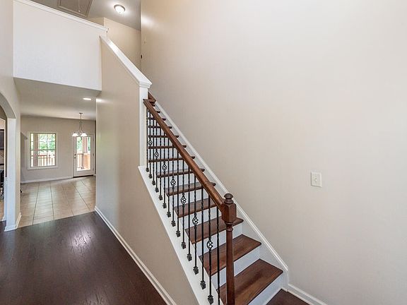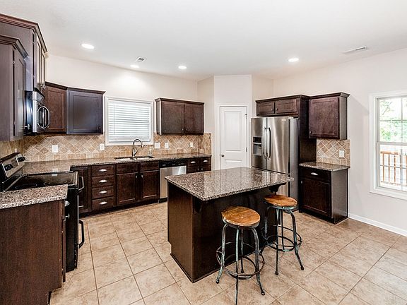 This 4 bedroom 2.5 bath home has an open floor plan, family room with fireplace, large kitchen with granite counter tops, island and pantry including a mudroom with cubbies. A formal dining room with coffer ceilings. The large master bedroom has a sitting area,2 walk-in closets and bathroom with his and her vanities. A covered porch with a fireplace and TV access and a fenced in backyard.