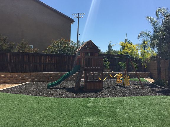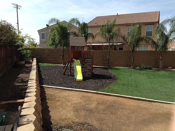 NO HOA! LOW TAXES!! Beautiful TURN KEY home on a quiet street. This home offers a massive master retreat with dual sink, separate shower, jetted tub and walk in closet. In addition there are 2 other bedrooms, LOFT and an office nook. Low maintenance yard complete with gas FIRE PIT, mature palm trees, stamped concrete, Malibu lighting, and play area for the kids! DON'T MISS OUT!