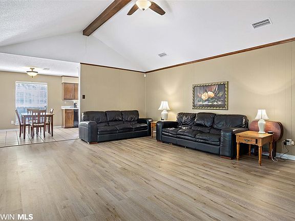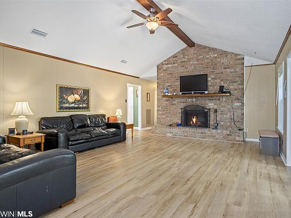 Welcome to this unique ranch style home located off Schillinger Road in West Mobile. Upon walking up to the home, notice the beautifully landscaped cul de sac lot across from the lake. Featuring 3 bedrooms and 2 bathrooms, oversized family room with magnificent brick wood-burning fireplace, formal living room/dining room combo off the foyer as you enter the house with a kitchen/breakfast room combo and large laundry room. Enjoy a spacious master, remodeled master bath with new barn door, double vanities, free-standing garden tub, and walk-in closet. "NO CPT" but you will find beautiful LVP floors throughout, bamboo floors in 2 bedrooms, with ceramic tile in the baths, laundry, and kitchen/breakfast combo. This home has a fenced backyard with shed and new French doors leading to the back patio. All homeowners have access to the common areas on the lake and the rights to fish. This home has a space for everything.