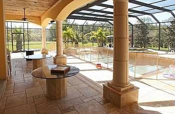 Mediterranean with quality & detail on a private country" three & one half " acre estate located in Odessa. This secure, privately gated with telephone recceiver entry home features a lushly landscaped entry leading to a paved motor court. This four bedroom, five full baths & two half baths has Italian stone called Ocra throughout its interior. The master bath has a large two sided entry/exit walk-in walk out shower and pearl whirpool tub. The front porch and covered lanai areas features stained pecky cypress ceilings. 12' volume ceilings are throughout the home and 14' volume ceilings in the foyer/gallery area alongwith precast columns that accent the interior of this home. The kitchen has granite counter tops, large Island with granite top, Wolfe appliances and a range hood covered with copper glass mosaics. The pool area is out of this "world". Oak tumbled stone floors highlights the entire lanai area including the heated self cleaning pool & heated spa with a state of the art outdoor kitchen, fireplace and granite tables for outdoor entertainment. A new addition is the 35' x 50' entertainment Pavilion contructed in the rear yard 2012. The Pavilion features stone floors and adjacent Barbeque Pit. The home has a 20' x 30' recreation room over the garage with access from inside the home. A porta cochere for quick entry and exits is one of many highlights of this home . The rear lot line does have a treed conservation area. The property is zoned to have horses for private uses. Brokered And Advertised By: FRANK BURNS REALTY INC (601800) Listing Agent: ROBERT ROMANO