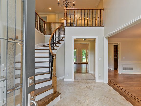 Located off Wolf Pen Branch Road in the exclusive Spring Farm Place, this custom built estate exudes elegance and tranquility upon its park like setting. With a desirable open floor plan and functional layout, this home is ideal for large gatherings entertaining family and friends. As you walk in the front door you will immediately notice the stunning architectural details beginning with a dramatic two-story foyer, featuring a stained glass entry with a grand arched window, tray ceiling, and a perfectly appointed curved stairwell as it's centerpiece. The foyer transitions into a handsome wood paneled study with gas fireplace, and private access to the first floor master suite. To the right of the foyer is a stylish formal dining room that has been recently updated with fresh paint, new lighting, and features elegant moldings throughout. The great room includes gorgeous coffered ceilings, a gas fireplace, custom built-in bookshelves, and extended views of the covered outdoor terrace. Progressing from the great room is where the gourmet kitchen, breakfast room, and hearth room unite. This unique space was custom designed to function as the heart of the home. With a remarkable barrel vault ceiling, cozy gas fireplace framed by custom built-ins, and featuring oversized well-appointed windows that showcase the spectacular views of the sprawling fenced in backyard. The gourmet kitchen features beautiful custom cabinetry, stainless steel appliances, a large center island with plenty of counter space to prepare, a sizable walk-in pantry, and a dry bar with a built in beverage center to conveniently serve your guests. This space is ideal for simple weeknight dinners or engaging with family and friends. To complete the main level is a master suite located on the opposing side of the home, offering plenty of solitude away from it all. The master bedroom features private serine views of the backyard, a personal gas fireplace, and a large ensuite master bathroom including, dual vanities, a relaxing soaking tub with a separate walk in shower, and two sizeable walk in closets. The second level features five spacious bedroom suites, each with personal ensuite full bathrooms and large walk-in closets. To complete this level you have a convenient second level laundry. The finished lower level offers abundant opportunities. Including a generous family room that accommodates enough space for a billiards area, a substantial wet bar with a kitchenette and secondary dishwasher, an exercise room/media room, full bathroom, additional bedroom, and a bonus room perfect for a playroom or craft area. This unique estate truly has it all! A beautiful well appointed home in a fabulous location, close to expressways, several amenities, fantastic public and private schools, in a desirable neighborhood setting, yet situated on a gorgeous lot with plenty of privacy. This lovely estate offers the best of both worlds.