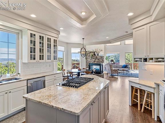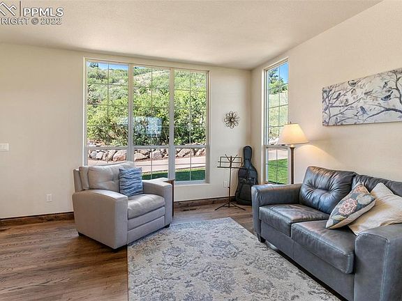 This Stunning Home sits on 1 1/4 acres backing to open space! The City and AFA views are breathtaking! The setting is private and secluded yet only a mile to all the amenities you could want. As you walk in you greeted by large windows allowing lots of Natural Light to highlight the Grand Stairway, Archways, Columns & Hardwood Floors of the Living Room/Dining Room. The Kitchen is fit for a chef and open to the first Family room with 3 sided fireplace to be enjoyed from both areas. The Kitchen has Granite Counter Tops, Stainless Steel Appliances, Gas Stove top, Lots of Cabinets, Pantry and Secretary/Desk area. Next is the Large Breakfast Nook where you can enjoy the Fireplace while sipping on your coffee or tea. The Family room offers built in's and walk out to very Spacious Wrap around Deck. This Large Deck is great for your outdoor entertaining while enjoying the never ending views of the City of Colorado Springs and Air Force Academy. Large office with Hardwood Floors and French doors, spacious Laundry and 1/2 Bath are all also on the Main Level. The elegant wrap around Grand Stairway leads to the Upper Level. The Master Bedroom has Sitting Area, Walk out to a Private Balcony and Spacious Walk in Closet with a Dressing Area. Adjoining 5-Piece Master Bath with Jetted Tub and lots of Windows for Natural Light. 2 additional Bedrooms, both with Walk-in Closets and adjoining Full Bath on Upper Level and an Office space area convenient to Bedrooms. Lower level has enormous 2nd Family room with Stone Gas Fireplace and double walk-outs to large patio with hook up for Hot Tub. Two more bedrooms, both with walk-in closets and one adjoining 3/4 bath. Large finished 3-car Heated Garage right off main level. Stucco and Stone exterior and Cement Roof tiles allow for low maintenance. This home is a true gem in a one of a kind setting on the West side of Colorado Springs!!!