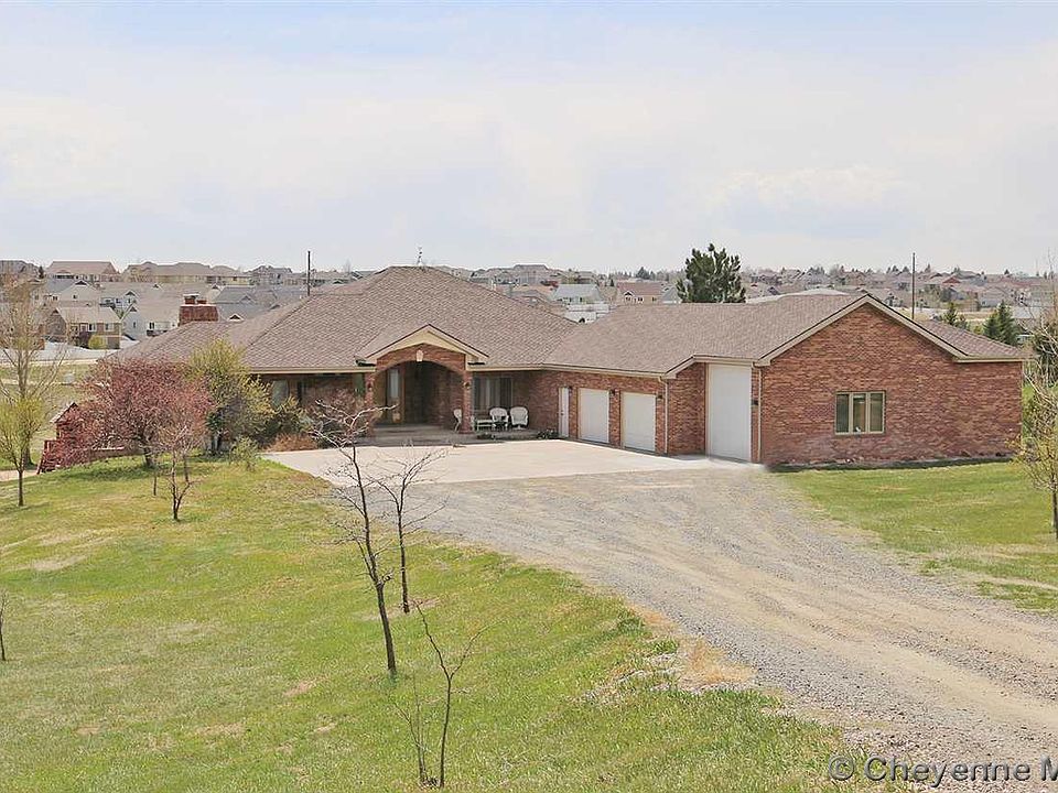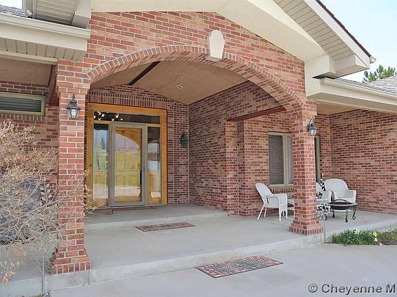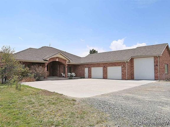 Single Family Home for sale by owner in Cheyenne, WY 82009. Perfect North Location on Five Acres Quality Throughout Beautiful all brick maintenance free ranch style with walk out basement 2X6 construction R-38 blown ceiling & R-19 wall insulation Hurd insulated glass windows Plywood silent floors Lifetime roof 530' well, automatic sprinkler & drip system Hot water on demand Two Rheem high efficiency gas furnaces Two Rheem air conditioning units Built in security & fire alarm system Home theater with built in surround sound system Heated 3 car & RV garage also hobby room with utility sink Insulated 6 panel garage doors Gourmet kitchen with walk-in pantry Sub Zero refrigered under counter drawers Dacor gas stove top New kenmore built in double oven Custom Wormy Maple cabinets, built-ins & woodwork thoughout Solid Wormy Maple 6 panel doors 18' vaulted ceilings on main level 9' ceiling in walkout basement Mainfloor laundry Additional kitchen & laundry in basement floor safe