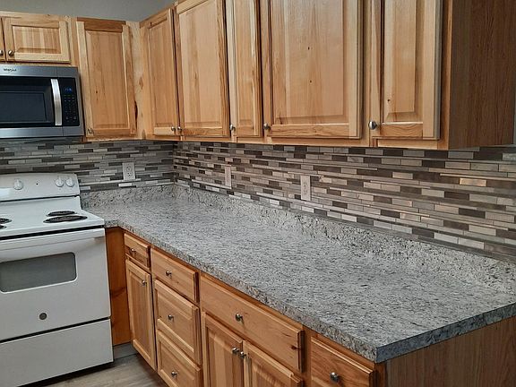 Remodeled townhouse style apartment in a four plex. Two bedrooms and full bath upstairs with a washer/dryer. Downstairs has 1/2 bath, living room with fireplace and kitchen. Outside has a 1 car garage