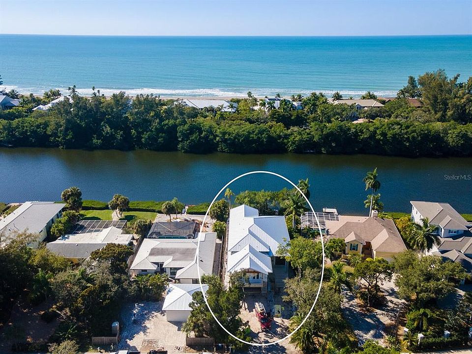 Under Construction. Completion date is end of June beginning of July. Located on the quiet southern end of Siesta Key and overlooking the tranquil 47-acre Heron Lagoon estuary is a brand new refined coastal style residence skillfully created by the talented team at Architura Space Planning and Design/Build. This peaceful paradise offers 68 waterfront footage and a dock for kayaking and paddleboarding as no power boats are allowed to interrupt the solitude provided by nature’s bountiful eco system. The visual architectural details are a beauty to behold. The open living area is divine with its volume ceilings, incredible staircase, French Oak floors, stunning kitchen and carefully planned layout that’s bright and sun-filled throughout. This serene island refuge includes a second-level owner’s area with private balcony overlooking the water and provides an incredible spot for viewing some of the most spectacular sunsets ever. The owner’s bath is a spacious jewel box and the walk-in closet is voluminous. Two ensuite guest rooms with private front balcony. Ample laundry and plenty of storage. The 2-story covered lanai leads to a wonderful outdoor area with summer kitchen and beautiful pool and spa. This home has natural gas connected, a security system, and is prewired for a generator. Light fixtures and ceiling fans are included. This home will likely become one of your most favorite addresses and will be a treasured retreat for generations to come. Move in by Summer of this year!