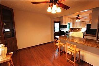 Completely remodeled home has finishes not found anywhere else at this price. The kitchen features granite counters & breakfast bar, plus stainless steel appliances, tile back splash, laminate wood flooring & built-in hutch. Updated main bath. New carpet, paint & ceiling fans. Downstairs is a family room &partially finished 3/4 bath. 4 car garage with 220 wiring. The driveway goes from the front to the back alley for drive-thru access. Insulated vinyl siding,landscape lighting, new deck