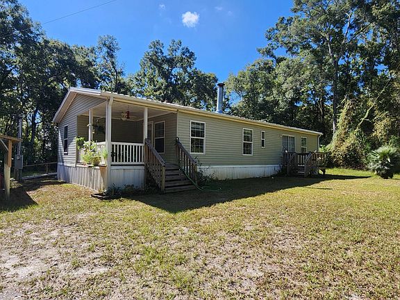 Looking for privacy and that country feel, but still close to town and amenities? This may be the one for you! This property features a wooded perimeter that offers privacy from the paved road and neighbors. The home and porches are full of charm and offer a cozy oasis. Just over 1 acre in a the Oak Meadows subdivision that is deed restricted to new doublewides and site built homes with porches and carports. No HOA. Minimal traffic on the backside of the neighborhood with no thru roads. Custom Town Homes high-end manufactured home with 2x6 construction and many upgrades. The home features open living areas, split floor plan, and lots of natural light. Updated Metal Roof and A/C unit are only 3 years old! Updated gutter system. Newer kitchen appliances. Stone fireplace and stove surround detail. Double paned windows and updated entry door. Cathedral ceiling. Large primary bedroom features large closet and good size ensuite bath with walk-in shower. Separate laundry room. Back deck measures 8 x 15 with solid, wood-constructed ramp and raised garden planters. Workshop is 22 x 25 with concrete slab and electric. Detached 19 x 20 double carport. Property features 4 inch well and additional RV plug. Landscaping includes flowering plants and butterfly garden. Only a couple of miles north of Chiefland, shopping, and restaurants. Many state parks and natural springs on the Suwannee River. Between Cedar Key and Steinhatchee Gulf communities for fishing and recreation. Roughly 1 hour commute to Gainesville. Call to schedule a showing today!