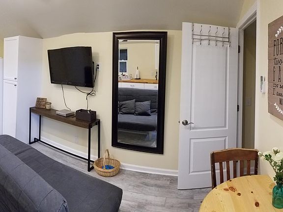 Newly renovated 1 bd 1 ba apartment with 2 car garage. No smoking. Background and Credit Check required for each person over 18. Cost is $29 per person. Electric, Water, and trash utilities cost a fixed fee of $80 per month in addition to rent. month to month lease with possible renewal or month to month extension