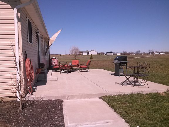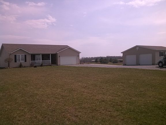 Check out this beautiful move in ready 3 bedroom, 2 bath ranch home. open kitchen, dining and living room. Kitchen has newer maple cabinets, back splash & tile floor. Center island is equipped with storage, electric and bar stools all kitchen stainless steel appliances are included. Living and dining area has hand scrapped hickory floors and French doors that lead out to a large concrete patio for summer BBQ or you can sit and relax on the covered front porch that has stone siding. This property also has a 2 car attached garage and a 24 x 30 detached garage. All this sets on 2.694 acres. County water, Greenfield Schools.