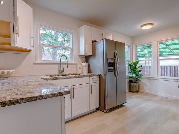 Suburban Splendor Near Wooodstock! Gleaming granite counters, new cabinets, full stainless appliance package w/ gourmet gas stove. Light and bright. Redone hardwood floors in Living room. New carpet in bedrooms. 2 modern bathrooms with updated fixtures. New furnace & Hot water heater. Shed in private fenced yard, ready for summer bbq's. 2 Bonus rooms in basement! Master loft, Subway tile. Open Sat 11-2. Reduced $10k! Must see! [Home Energy Score = 5. HES Report at https://rpt.greenbuildingregistry.com/hes/OR10019222]