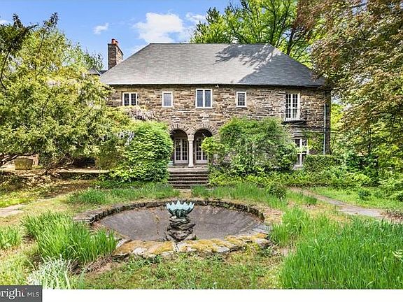 Incredible opportunity to own one of the most stately properties in Elkins Park ?a 1920's stone Colonial situated amid lush gardens on nearly an acre. Available for the first time since it was constructed for Philadelphia businessman Morris Kaufmann in 1924, this beautiful 6-bedroom house has remained within the same family ever since. Built to the most exacting standards of its time, this home and its lush gardens retain much of their original magnificence but require work to update them. There's a separate two-bedroom apartment above the garage with a private entrance which can be used as a studio, in-law suite and more. As you walk through the front door into the expansive foyer, you feel as if you're transported to a bygone era. The original marble tiles and art deco-inspired marble staircase (marble imported from Italy) exude a feeling of elegance. Sunlight flows through the French Doors which offer immediate views of the backyard gardens to all who enter the home. To the left, the spacious living room with one of three fireplaces in the home, two towering built-in book shelves and wrought-iron wall sconces, which along with the foyer chandelier, were created by famed metalworker Samuel Yellin. A trio of French Doors open onto the garden terrace making for excellent indoor outdoor entertaining space. On the opposite side of the foyer is the dining room where you'll find a fireplace and French Doors which also provide access to the garden terrace. There is a large butler pantry which adjoins the kitchen and has a rear staircase leading to the second floor. Upstairs, in the master bedroom, you'll find a fireplace, windows on three walls and a walk-in closet with cabinets and drawers. The master bathroom, which has a separate shower stall and bath, leads to a second room which could be used as a bedroom or office. The third bedroom has a full en-suite bathroom and, like the master bedroom, a set of French Doors which access a Juliet balcony overlooking the gardens. Original pine floors throughout the 2nd floor. A wing of three smaller bedrooms, a hall bathroom and a separate apartment with full bathroom complete the second floor. The attic has been finished and provides additional storage, living space and bathroom. The private grounds are covered with mature trees, bushes and other plantings. An intricately-planned backyard garden still offers seasonal bursts of color. The roof and furnace were recently replaced. The home is being sold as-is.