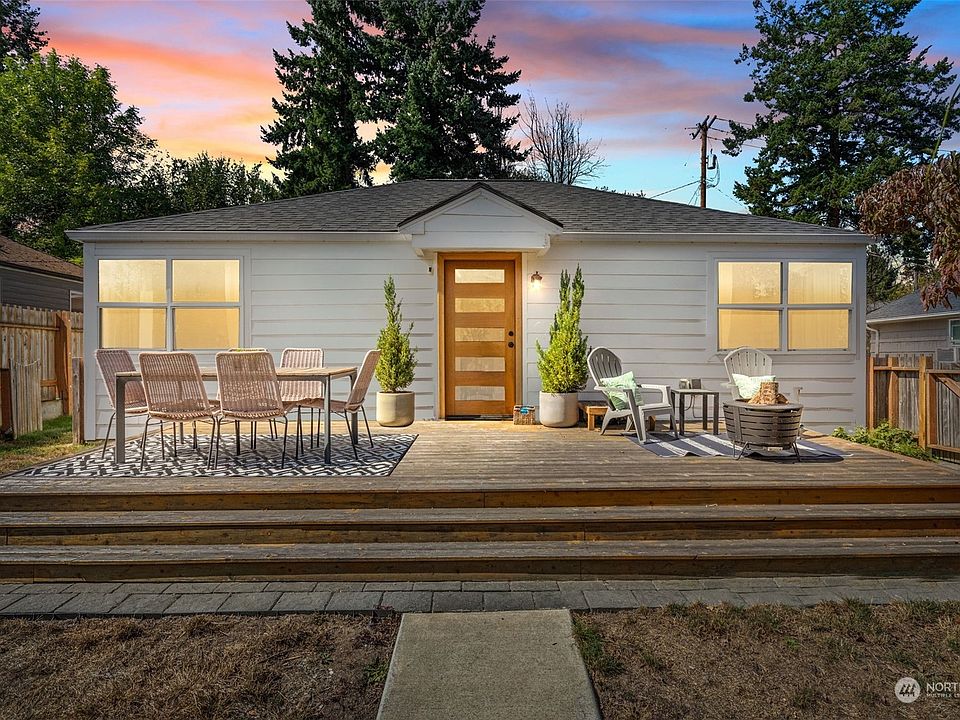 Welcome to Highland Park in West Seattle! This lot sits elevated above the road creating a private front yard with huge deck for entertaining. Park two cars off street on the shared driveway + EV charger. Enjoy the freshly refinished hardwood floors and functional layout that makes the home feel bigger than its sf. Plenty of storage in house but don't forget about the 400sf detached garage. Newly updated kitchen features modern cabinets, quartz counters, farm style sink, along with newer appliances. Detached office is 120sf and fully finished with power and internet. Updated electrical and plumbing, new roof, gutters and siding. Pre-inspected!