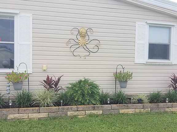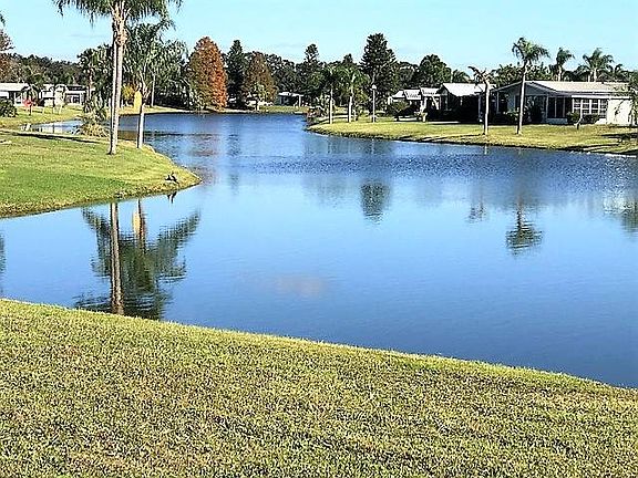 1. Very nice 2-bedroom 2-bath 1981 Schult home with lake views. 2. Enclosed lanai looking over the lake with double pane windows, ceramic tile floor. 3. This home has an open floor plan. Nice sized living room with carpeting and a ceiling fan. 4. The Kitchen has large bay windows looking at the lake. The windows also give you plenty of light making the kitchen nice and bright. Kitchen has new stainless steel appliances, pantry and a double-sided sink. 5. laminate floors in the kitchen, dining area and hallway. 6. Large built in hutch with cabinets and drawers to give you extra storage. 7. Storage in the hallway made it into a mini bar area. 8. The guest bedroom is huge with a large walk-in closet and ceiling fan. 9. Guest bathroom is a tub shower combo with sliding glass doors and ceramic tile floors. 10. Master bedroom is large and bright with a walk-in closet and a double-sided closet. 11. The Master bath is updated with a step-in shower, and tile back splash around the sink and vanity. 12. This home also has an air-conditioned garage with 325 square feet. WOW!! 13. The washer and dryer are also in the garage. 14. The Air-Conditioning is new in 2018. 15. There is a 1 piece roof over. 16. There are removable storm storm shutters.
