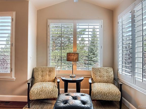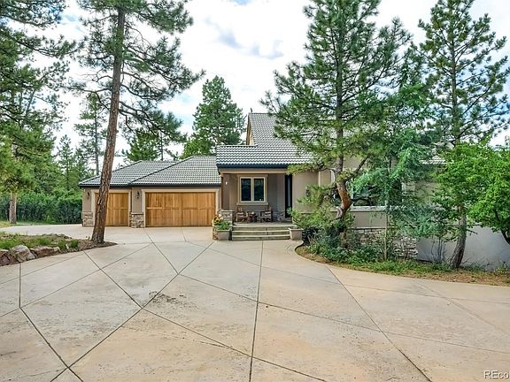 Looking to surround yourself in serenity without giving up the conveniences of urban living? Look no further, this incredible estate is nestled within a 5-acre private playground that is minutes from Castle Rock & Parker amenities. The interior of this home boasts ample architectural upgrades including raised & vaulted ceiling framed by custom crown molding, semi-circular staircase, metal & specialty tile throughout, custom built-ins & niches, plantation wood shutters, Santos Mahogany wood & so much more. The main floor hosts an open entertaining area featuring a wall of windows that allows you to enjoy the beauty of your Colorado paradise year-round from the open living room, dining space & a cozy sitting area all visible to the well-appointed professional grade kitchen equipped w/a large prep island, stainless steel appliances including a wolf range & hood, dishwasher, ample storage & access to a luxurious outdoor living space that has room for a natural gas fireplace & new IPE decking. Other main floor features include a large office, a salon enveloped in natural light from its oversized windows, laundry room, a half-bath for visitors, & the pi ce de r sis tance - the sprawling master suite & 5pc spa inspired ensuite w/ heated mosaic tile floors, granite hard surfaces, built-in dressing bench, frameless glass shower cove & a spacious walk-in closet w/ custom built-is. The walk-out lower level features a private suite equipped with two walk-in closets & ensuite perfect for long term guests, college age kids or multi-generational living, an additional two spacious bedrooms, a well-appointed shared bath with double vanities & a custom shower cove, a large entertainment area with a custom stone hearth, all new carpeting & access to a secondary outdoor living area that is covered featuring stamped concrete surrounded by manicured lawn & mature evergreens. For those looking to make move-in hassle free, the seller is willing to negotiate on some of the furniture.