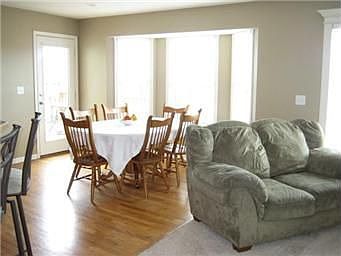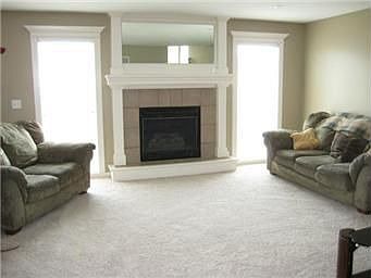 Great open 2-story plan with new carpet and runner stair carpet on main level! Newer paint and roof. Better than NEW-hardwood floors, wood blinds throughout, fenced yard with oversized batio and basketball goal. Deck overlooks landscaped & treed yard. Playset stays! Spacious Great Room with double mantle fireplace, kitchen and eating area. 4 large bedrooms on 2nd level with laundry ROOM. Unfinished basement is stubbed for half bath and could provide additional living space. Great neighborhood!