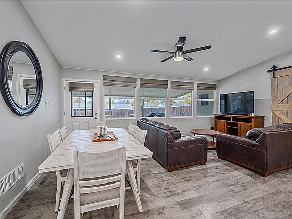 This beautiful house is located in the Historic Sunset Subdivision and the entire home is recently updated. Enter into vaulted ceilings and light, an open floor plan decked out in plank-style flooring, and new luxury vinyl tile leads into the kitchen. The stunning kitchen has quartz countertops, stainless steel gas range and appliances, white mission style soft-close cabinets and opens to the bright, window-lined living room. The main bedroom steps up to its own private level that includes an en-suite bathroom with custom shower, luxury vinyl tile floors and white furniture style vanity. A large walk-in closet is tucked in the main bedroom. The opposing side of the house hosts 3 bedrooms & 1 full bath with updated custom tile tub surround. Step out of the living room onto the covered patio surrounded by a generous, private fenced back yard with mountain views and mature trees. The back yard includes a shed and a rock area for a fire pit. There is central air conditioning throughout and ceiling fans in all rooms. Located within 5 minutes of King Soopers, 10 minutes to Olde Town Arvada or Downtown Westminster, and a quick 15 minute drive to downtown Denver. Dogs and cats allowed! - 12 month lease (this is negotiable) - Renter is responsible for all utilities: water, electric, gas, trash, internet. - Renter is responsible for mowing, yard care, and snow removal. Lawn mower will be provided. Optional to pay extra for third party lawn care service if desired. - No smoking on property. - Pet rent is negotiable depending on pet quantity. No more than 4 total pets can be allowed.