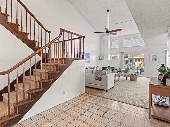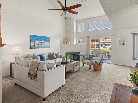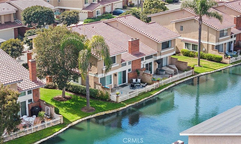Dreams come true in Seaside Village where you can own an upgraded waterfront townhome in Huntington Beach. Behind the gates you will find security, serenity, and stunning views. This executive townhome is an end unit and offers a two-car driveway that leads to the 2-car garage. Soaring vaulted ceilings greet you as you enter the home. The large living room has a floor to ceiling fireplace so you can stay warm and cozy while gazing at the calm, inviting lagoon outside the patio door. The waterfront patio extends the width of the home and has plenty of room to BBQ and entertain or sit still and enjoy the peaceful water view. Luxury vinyl floors are found in the dining area and the updated kitchen. An additional peninsula adds extra informal counter seating and entertaining space. Granite counters and wood cabinets in the spacious kitchen make cooking your favorite meals a breeze. The gas range, microwave, and dishwasher are included. Updated recessed lighting has been added. Ceiling fans in the living room and dining room keep you refreshed all year. A remodeled powder room downstairs has a new vanity, granite countertop, designer mirror and custom fixtures. The dramatic wood staircase leads to 3 bedrooms. The first room at the top of the stairs has stunning barn doors and is used as an office. Adding a closet makes it the 3rd bedroom. The second bedroom is light and bright. The hall bathroom has a beautiful vanity with granite counters, practical shelving and upgraded fixtures. The primary bedroom overlooks the lagoon and has its own bathroom and a walk-in closet. The primary bathroom has been remodeled and is complete with a new double sink vanity with granite counters, lovely mirrors and lighting. There is a separate shower and toilet area. Ceiling fans are in all the bedrooms. Seaside Village offers a pool, spa, tennis courts and greenbelts. Less than ½ mile to the sand to enjoy the beach.