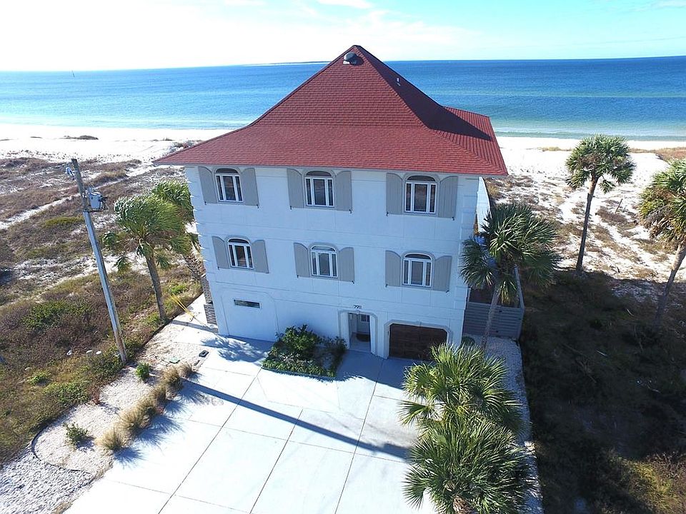 Attention to detail, stunning views of the Gulf of Mexico & meticulous finishes make this gulf front executive home a unique find. This well-appointed residence boasts five bedrooms, multiple living areas, spacious waterfront decks, open living floor plan and tasteful coastal dcor. The gourmet kitchen combines both function & style with custom cabinetry, high end appliances & quartz countertops. There is plenty of room for the extended family with two waterfront suites with spa inspired ensuite baths, a family suite with waterfront bedroom, full bath, & bunk room, plus a 5th bedroom with bunks for the teenagers and kids. Watch sports on the big screen tv and play games in the poolside indoor living space with kitchenette or hang out in the second-floor bonus living area complete with built in cabinetry with coffee bar and wine fridge. Additional amenities include an enclosed garage, three floor ELEVATOR, outdoor shower, storage for all the beach toys and custom built in racks to store the kayaks. Spend the day relaxing by the resort style POOL overlooking the Gulf of Mexico and enjoy the breathtaking sunsets nightly in your own backyard. This fully furnished, professionally styled home has everything that you are looking for in a coastal dream home! Link to private tour: https://bit.ly/7911Hwy98