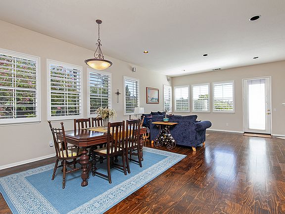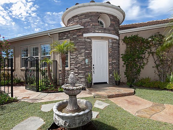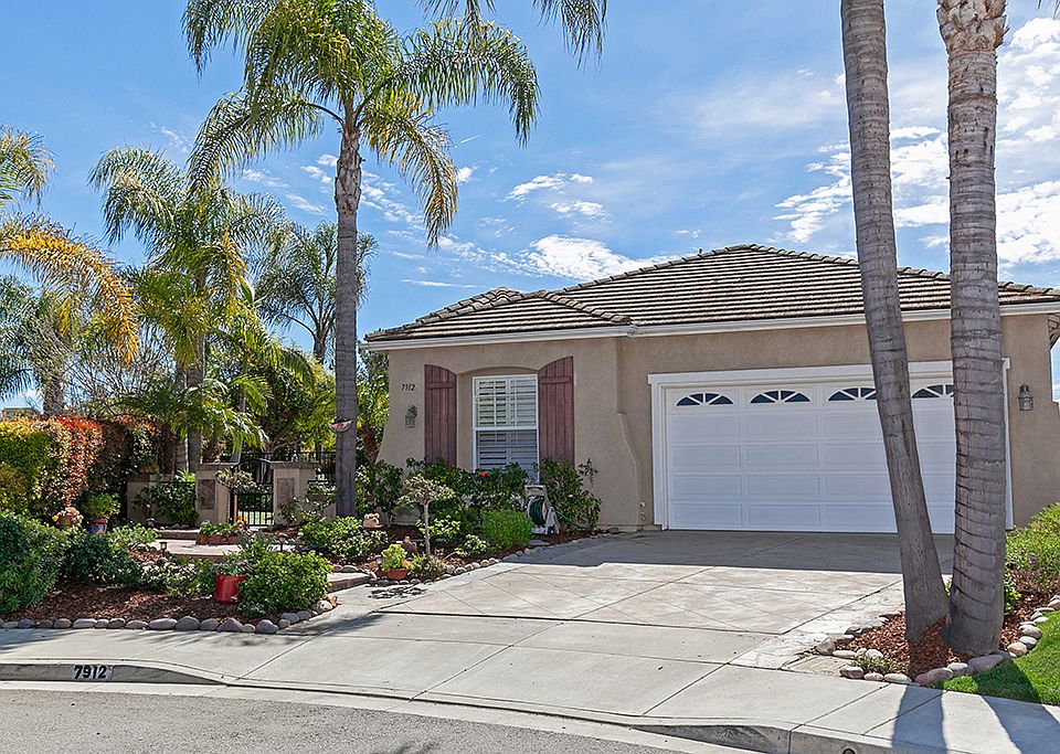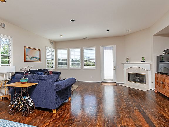 Single level home at the end of cul-de-sac in desirable La Costa Valley. 2,037 sq. ft., 3 bedrooms, and 3 full bathrooms and open floor plan. Some of the wonderful features of this home are: One of the larger lots in La Costa Valley, the unique pie slice shaped lot of .28 acres backing up to open space provide privacy and space between neighbors on both sides and yard space South facing exposure for bright sunshine all day with sunrise to sunset views Open floor plan with kitchen, living room, family area all in 1 great room all with Beech hardwood floors and gas fireplace Marble flooring in entryway, in front of fireplace, and master bath Primarily drought tolerant landscaping with fruit trees, courtyard entry with fountain, slate walkways and patio Windows all around the house with white wood plantation shutters for bright sunlight and great ventilation Central air conditioning and heating Brand new carpet and paint as well as refinished hard wood floors Living room wired for surround sound Inside wall built in pest control system HOA fees of $125 a month provides access to pool, jacuzzi, tennis, fitness center, and activities DO NOT MISS THIS OPPORTUNITY!