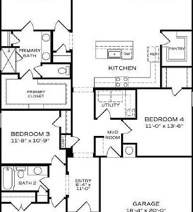 Presenting the Luna Traditional to Garrett Creek Lakes! This new construction ranch style home features an open concept floor plan. Entering through the foyer you will find bedrooms 2 and 3 in between a full bathroom with gorgeous quartz countertops throughout and across the hallway find bedroom 4. The kitchen is open to the breakfast area and the great room. The primary suite offers a walk-in closet and 2 large windows, providing tons of natural light. The primary bathroom features a double vanity and spacious walk-in tiled shower with glass door. This home also features a separate laundry room, and an attached 2 car garage. Outside you will also find a large, covered patio area. Make this house your home today. *Virtual tour and pics are rendering photos, colors and selections will vary!