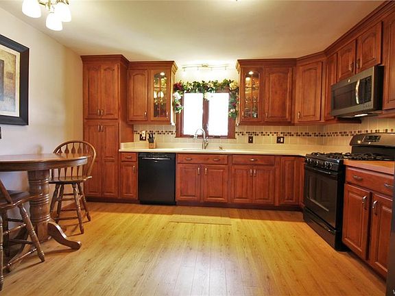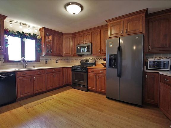 Every aspect of this immaculate home has been impressively well maintained. Updated eat-in kitchen features quartz counters, high end laminate flooring, and plenty of cabinet storage. First floor features 2 bedrooms and an updated full bath with walk-in shower and glass surround. Formal dining room and living room with large window and front entry. 2nd floor has master bedroom with built-ins, recessed lighting and walk-in closet with more built-ins. Another bedroom and a full bath with a whirlpool tub on 2nd floor. Backyard has a large stamped concrete patio where you can sit and view Lake Erie in the distance over the countryside. Doublewide concrete driveway leads to oversized 2.5 car garage. All updated windows and mechanicals. Must see inside!