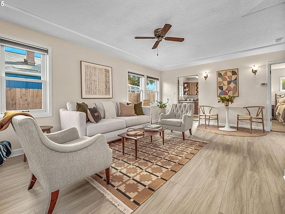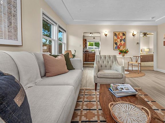 Tucked away on a quiet dead-end street, this 2-bedroom, 1-bathroom bungalow blends modern updates, timeless charm & beautifully curated outdoor spaces. Cedar plank siding, new fiberglass entry door, double-pane Milgard fiberglass windows & Anderson storm doors enhance energy efficiency & curb appeal. Inside, new luxury vinyl plank flooring flows throughout, with new high quality carpeting in the bedrooms for a cozy touch. The newly remodeled bathroom features a beautiful corner shower, elegant vanity, & stylish fixtures. The kitchen shines with generous cabinetry, stainless steel appliances, dual fuel range with a 5-burner gas cooktop & two electric ovens. Fresh interior paint brightens every space. Top-to-bottom system upgrades offer peace of mind, including a new 200-amp electrical panel, all-new PEX plumbing (2020), new sewer line (2024), and radon mitigation system (2024). A high-efficiency heat pump water heater provides year-round energy savings. Storage is plentiful with a spacious attic, and the unfinished basement has plenty of room to imagine more finished space. Step outside to a gardener’s paradise, lovingly planted with Beauty Berry, Rose of Sharon, Midnight Marvel Hibiscus, Hot Lips Salvia, lavender & a stunning Magnolia tree. The low-maintenance front yard boasts drought-tolerant, year-round interest and blooms. RV parking on the driveway has an electrical outlet with potential to upgrade to EV charger. The 10x12 powered shed is very functional and provides storage for tools, etc. With an HES score of 7/10, this home is as efficient as it is inviting. Located just ½ mile from downtown St. Johns where you'll find charming local offerings such as theatre, farmers market, bakeries, restaurants, & shops. So convenient with 4 major grocery stores under a mile away. A short stroll takes you to Cathedral Coffee, & UP is only 1.4 miles.Close to many bus lines, and easy access to downtown via HWY 30.A carefree and easy Portland lifestyle is available here! [Home Energy Score = 7. HES Report at https://rpt.greenbuildingregistry.com/hes/OR10227399]